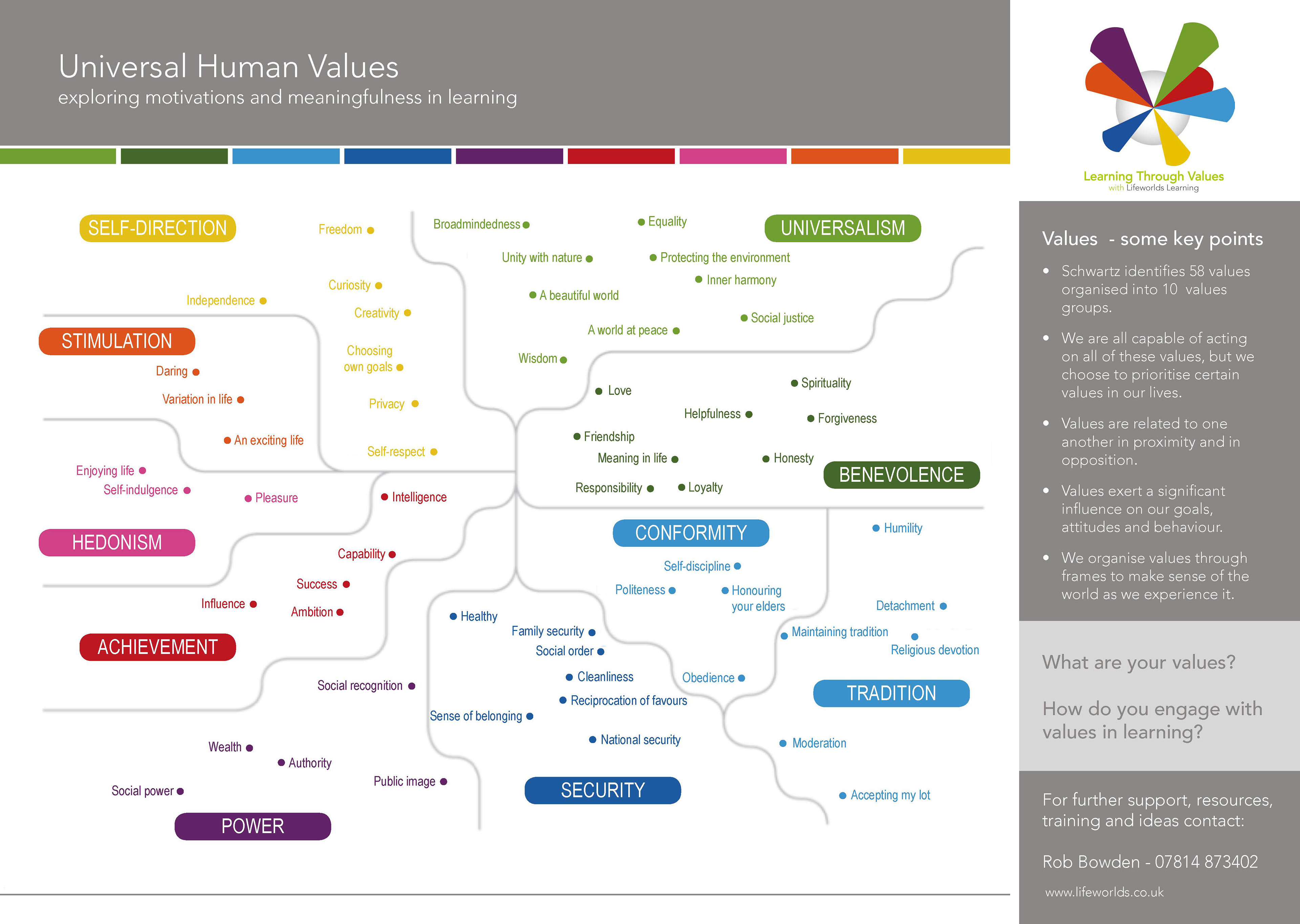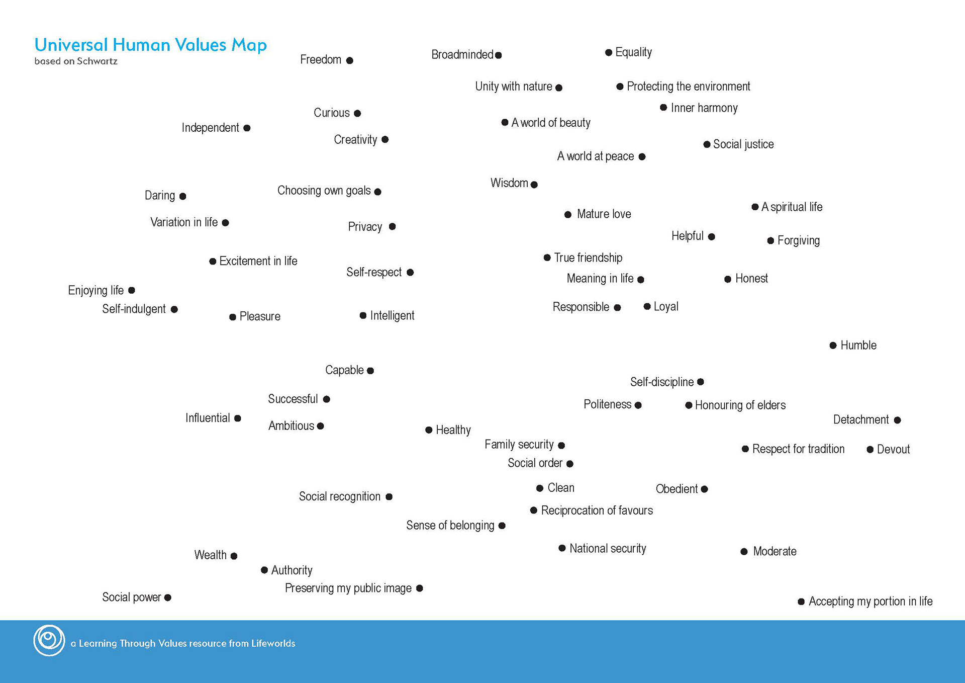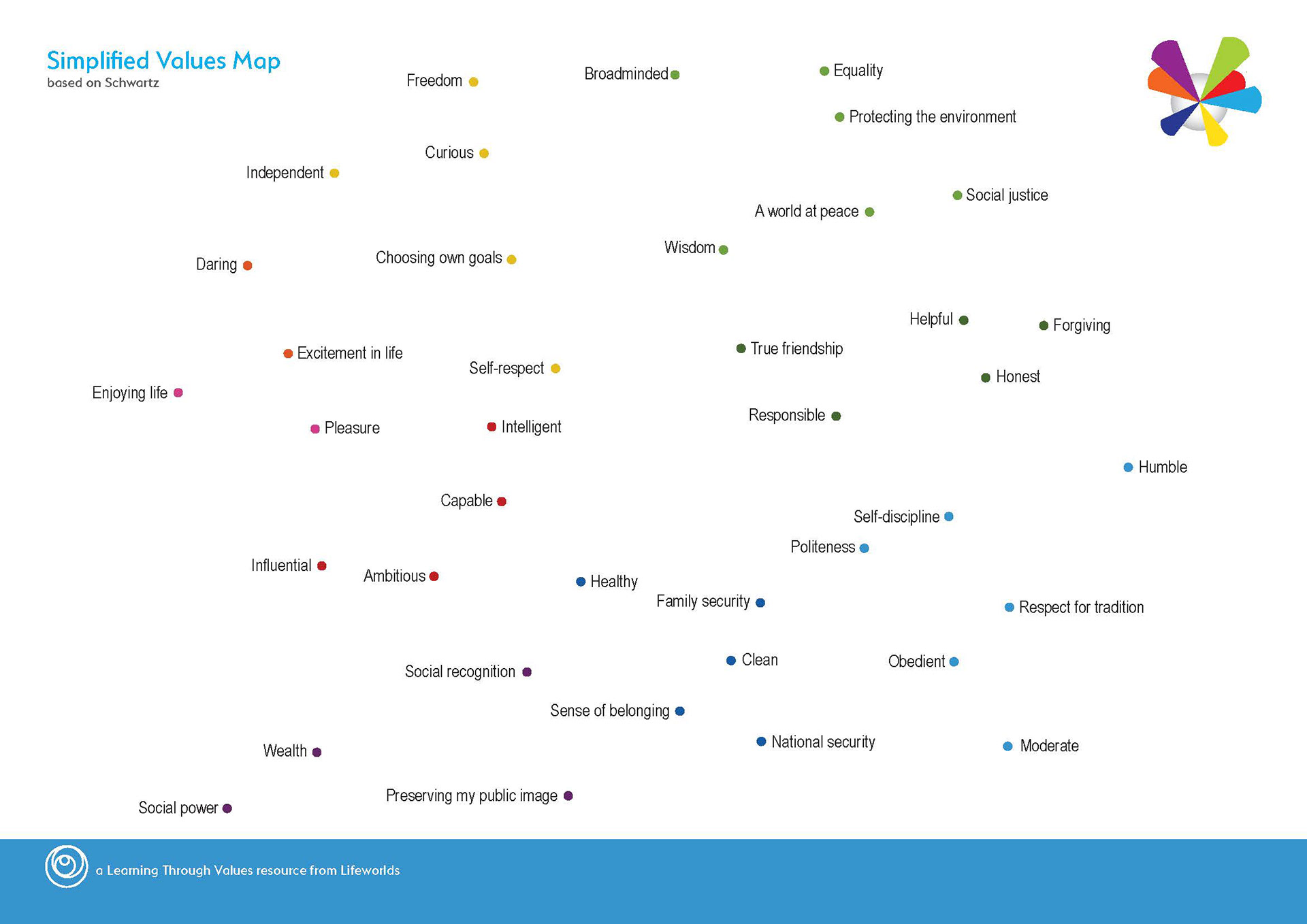 This is a simplified values map that was developed for use with 11-16 year old students to aid their engagement with Schwartz's Universal Human Values.